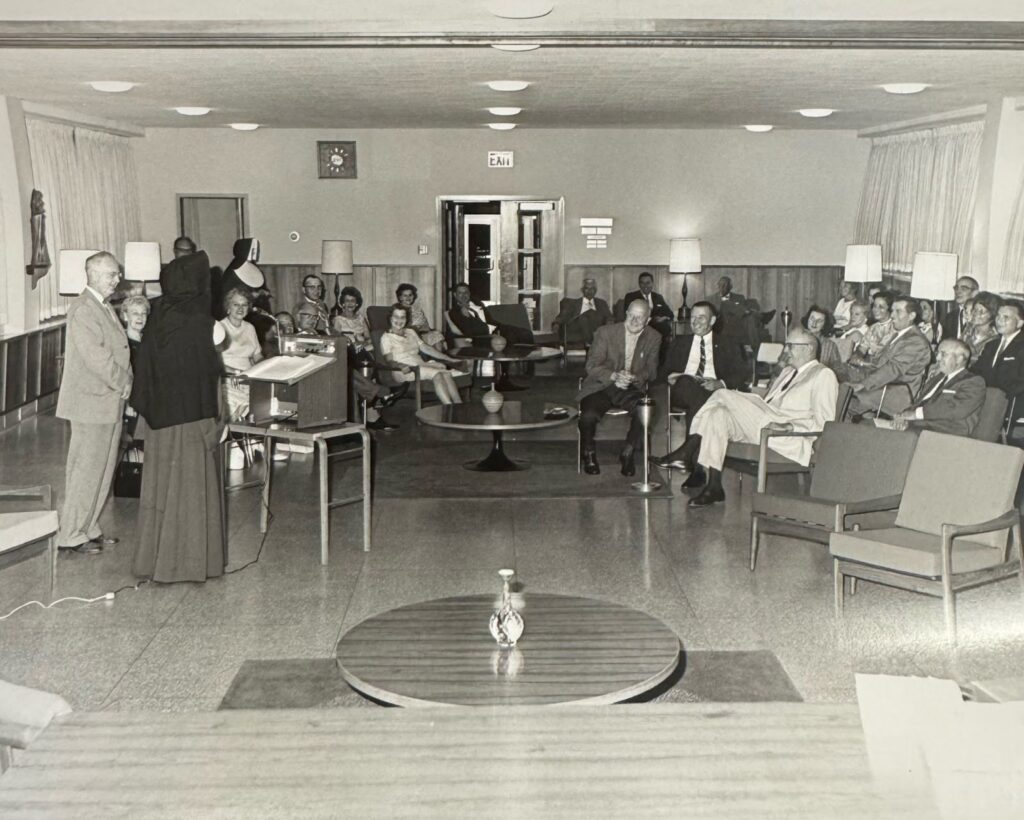 Villa Maria Hall was also home to the university’s original theater, located in what is now the registrar’s office across the hall from the old pool. This space hosted plays and performances and featured a sloped floor, similar to traditional theaters, although that feature is no longer visible today.